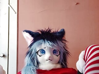 Мастурбирует и стонет на кровати в рождественском наряде